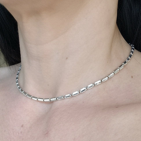 Collana in acciaio con strass rettangolari disponibile in color oro e argento, si abbina perfettamente al bracciale Celine